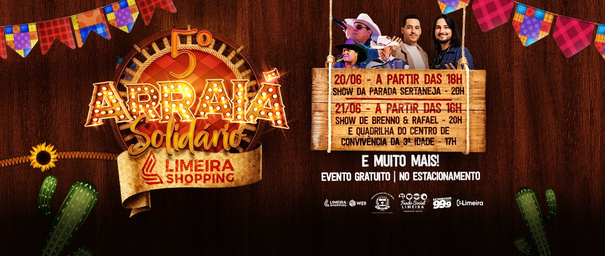 O “Arraiá Solidário” do Limeira Shopping, a festa junina mais esperada de Limeira e região, começa nesta sexta-feira (20/6). A ação é realizada em parceria com o Fundo Social de Limeira e 12 entidades assistenciais, que vão receber toda a arrecadação.