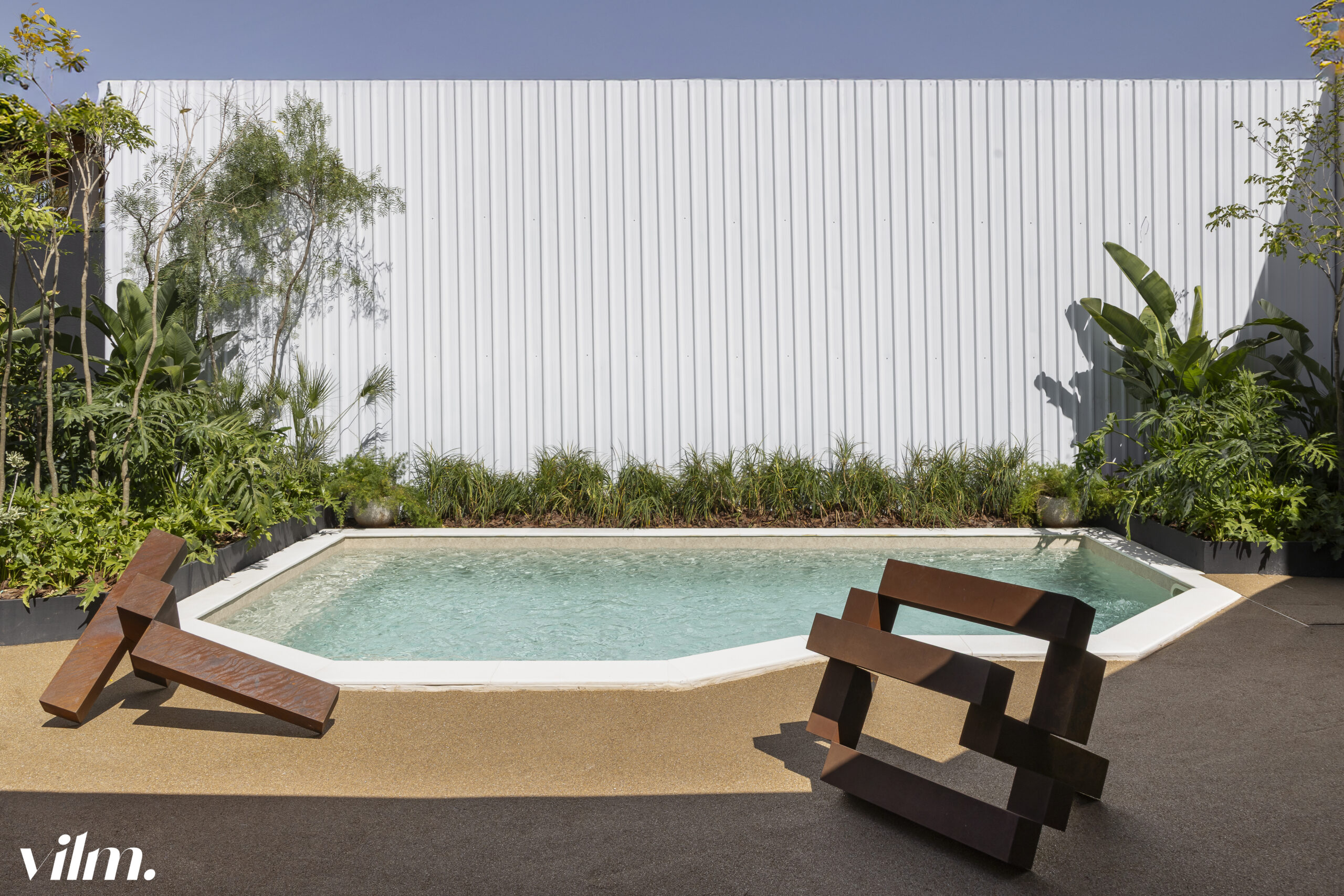 Na Cozinha do Chef, assinada por Eloisa Mondi e Rose Araújo, a inspiração vem da Amazônia: os acabamentos em madeira e fibras remetem à cultura brasileira e à valorização do regional. Já o Espaço Água, de Mônica Costa, propõe um olhar para a permeabilidade do solo por meio do uso de piso drenante, enquanto a vegetação exerce papel de reguladora natural do microclima, aproximando arquitetura e natureza de forma prática e sensorial.