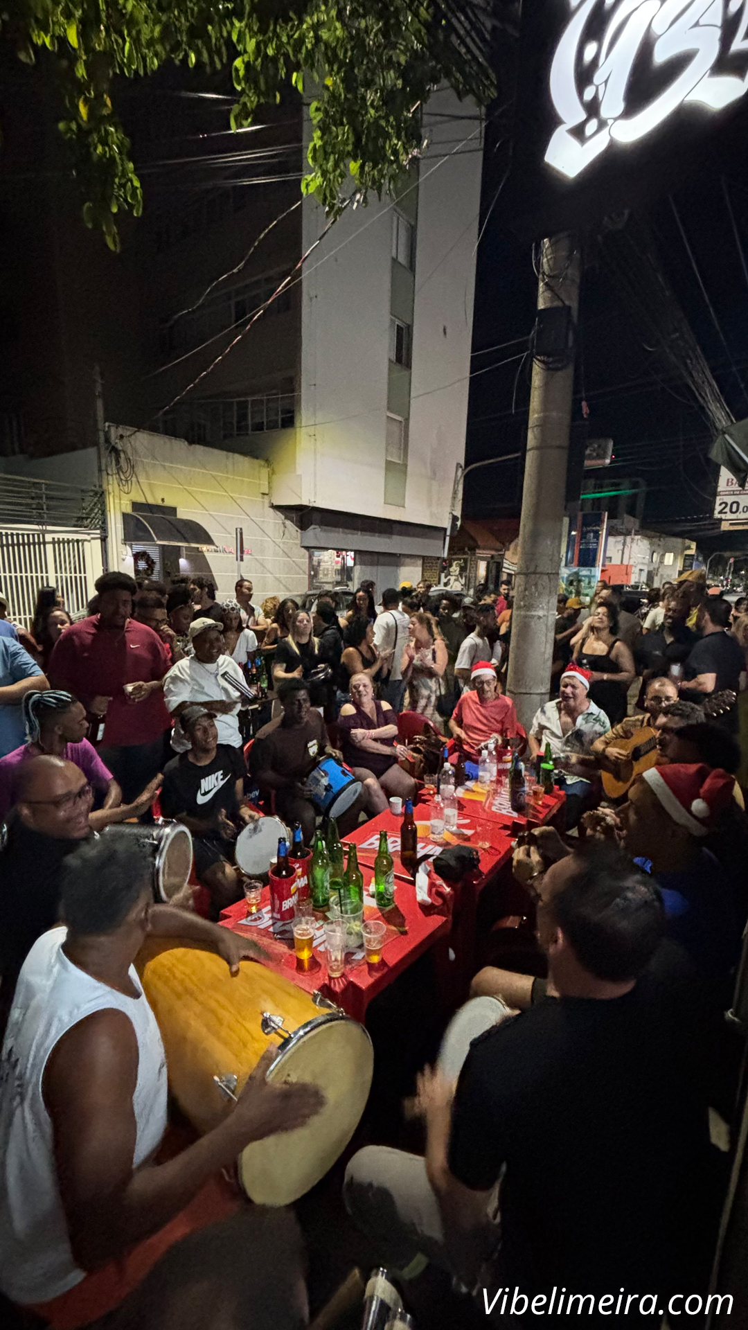 A roda de samba acontece em frente ao bar, daquele jeito que todo mundo já conhece: samba bom, gente animada, cerveja gelada e muita resenha. É o ponto certo pra reunir os amigos, curtir o domingão e fechar o ano com o pé direito. O melhor de tudo? É de graça. Só chegar, escolher um lugar e deixar o samba te levar.