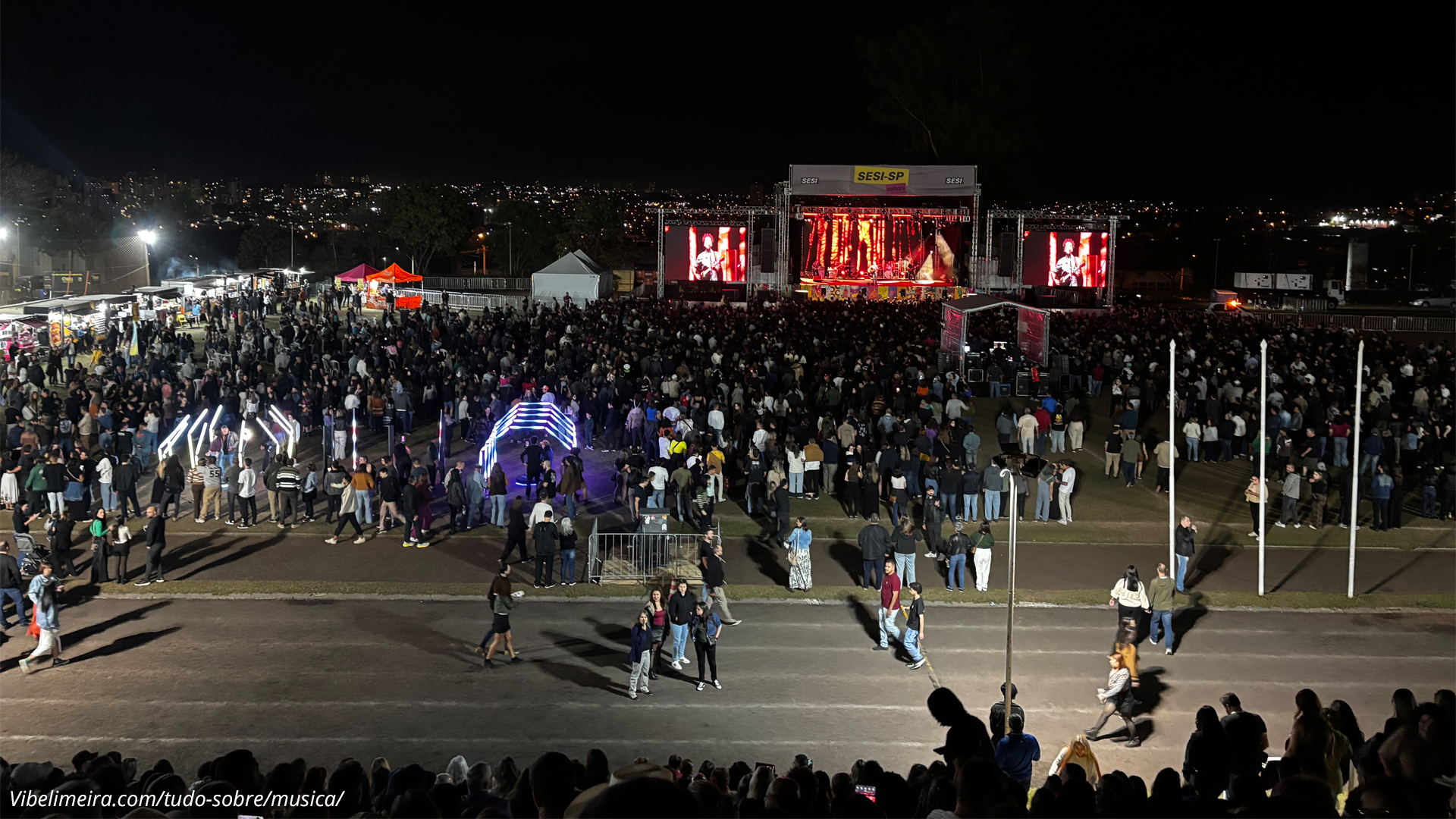 Apesar da longa fila na entrada, todos os presentes conseguiram acessar o evento tranquilamente a tempo de acompanhar o show. O SESI Limeira ofereceu uma estrutura completa, com food trucks, opções de bebidas e caixas móveis espalhados pelo local, agilizando o atendimento. Havia variedade para todos os gostos e idades, garantindo que o público pudesse aproveitar a noite sem preocupações.