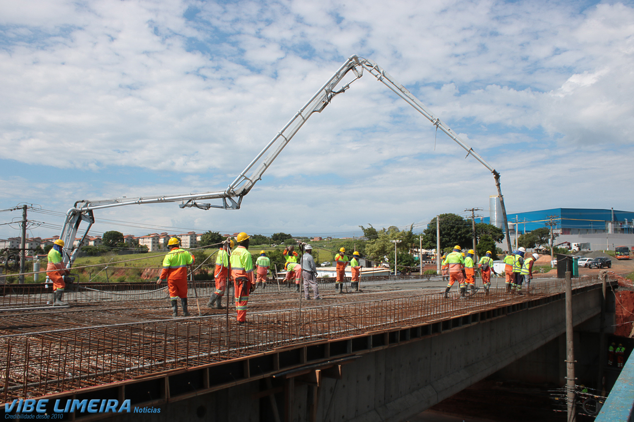 As obras do complexo viário Paulo Natal, que compreende a duplicação do viaduto e a implantação de alças de acesso na região do Jardim Novo Horizonte, avançam e chegaram, nesta segunda-feira (29), à fase de concretagem do tabuleiro do novo viaduto – o tabuleiro receberá, em breve, a massa asfáltica. O prefeito Mario Botion e o secretário de Obras e Serviços Públicos, Dagoberto Guidi, acompanharam os serviços.