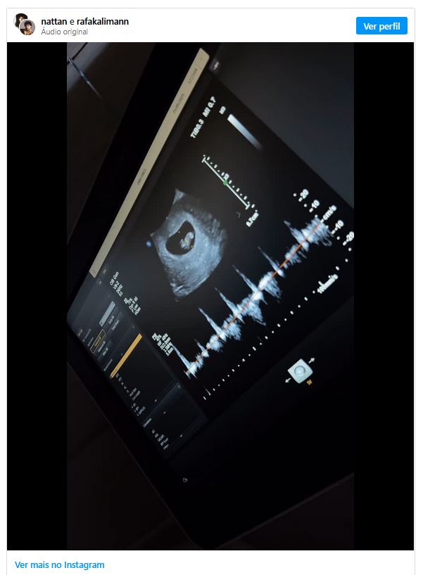 "Tem mais um coraçãozinho batendo aqui", escreveram os dois na legenda do vídeo. Nem o sexo, nem o nome do bebê foram revelados.